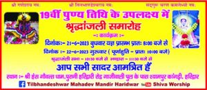 हरिद्वार। श्री हंस गौवत्स धाम श्यामपुर कांगड़ी में हंस दास महाराज की 19वीं पुण तिथि गुरुवार को श्रद्धापूर्वक मनायी जाएगी। पुण्य तिथि कार्यक्रम का शुभारम्भ आज यज्ञ के साथ हुआ। आश्रम के परमाध्यक्ष श्रीमहंत त्रिवेणी […]