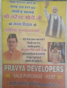देहरादून। प्रधानमंत्री मोदी के जन्मदिवस पर अखबार में सीएम धामी व नव नियुक्त एसएसपी अजय सिंह के फोटो के साथ बधाई देना एक प्रॉपर्टी डीलर को भारी पड़ गया। दून पुलिस ने मामले का संज्ञान […]