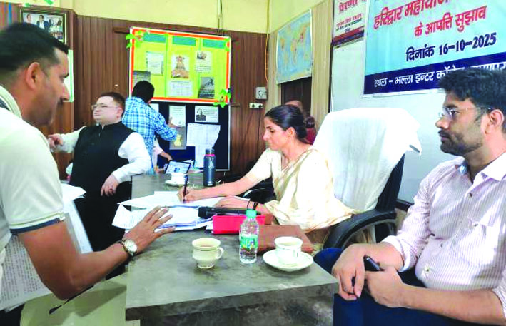 हरिद्वार। हरिद्वार-रुड़की विकास प्राधिकरण (एचआरडीए) की उपाध्यक्ष आईएएस सोनिका ने गुरुवार को भल्ला कॉलेज, हरिद्वार में हरिद्वार रुड़की के मास्टर प्लान 2041 को लेकर जनसुनवाई की। इस दौरान उन्होंने जनता की आपत्तियों और सुझावों को सुना। इस अवसर पर नगर निगम आयुक्त नंदन कुमार, एचआरडीए सचिव मनीष सिंह सहित सभी संबंधित विभागों के अधिकारी मौजूद रहे।