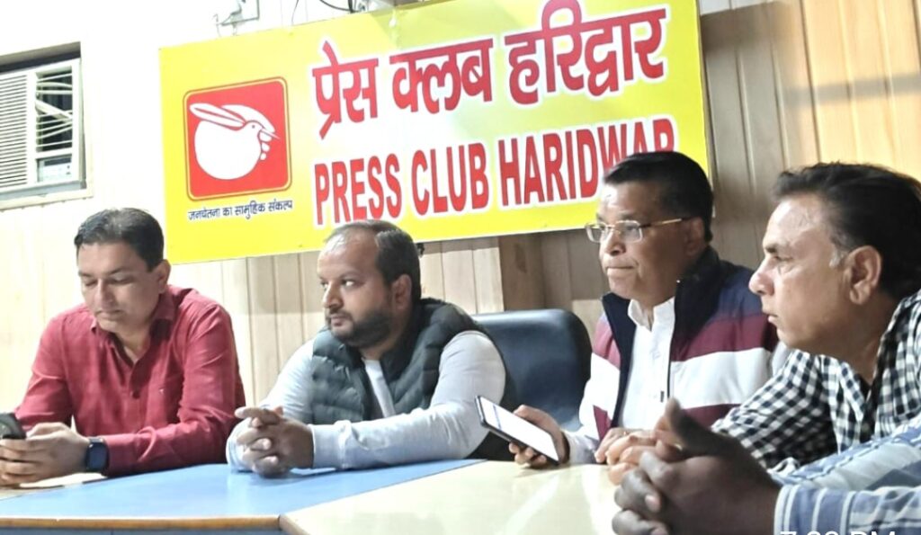 हरिद्वार। श्यामपुर कांगड़ी क्षेत्र में भू माफिया द्वारा जमीन पर कब्जा करने के बाद उपजे विवाद को लेकर महानगर कांग्रेस अध्यक्ष अमन गर्ग एवं अन्य कांग्रेसी पीड़ित राजकुमार के समर्थन में आगे आए हैं। प्रेस क्लब में पत्रकार वार्ता के दौरान महानगर अध्यक्ष अमन गर्ग ने आरोप लगाया कि राजकुमार की भूमि पर अवैध रूप से भूमाफिया कब्जा करना चाहते हैं। राजकुमार को भू माफिया द्वारा डराया धमकाया जा रहा है।