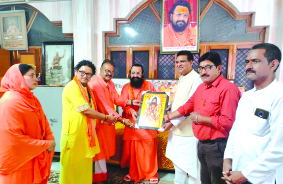 हरिद्वार। श्री अखंड परशुराम अखाड़े के अध्यक्ष पंडित अधीर कौशिक ने अखाड़ा परिषद अध्यक्ष एवं श्री पंचायती अखाड़ा महानिर्वाणी के सचिव श्रीमहंत रविंद्र पुरी महाराज को भगवान परशुराम का चित्र एवं फरसा भेंटकर सम्मानित किया। इस दौरान श्रीमहंत रविंद्रपुरी महारज के साथ वृन्दावन से आयी साध्वी राधा सरस्वती एवं पूर्व विधायक संजय गुप्ता को भी सम्मानित किया गया।