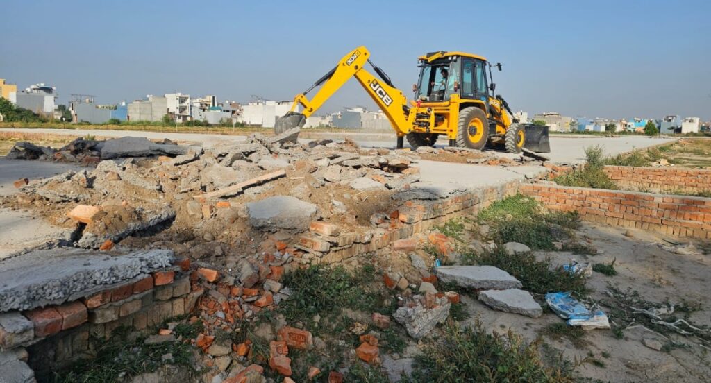 अवैध प्लॉटिंग पर प्राधिकरण की कार्रवाई, जेसीबी से किया ध्वस्त