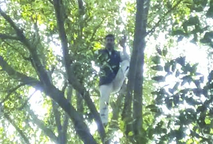 पुलिस को देखो तो चढ़ गया पेड़ पर