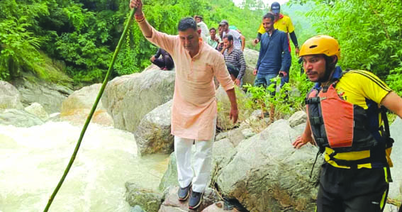 सिमलखा निवासी वन दरोगा देवेंद्र सिंह बिष्ट बुधवार रात अपने साथी के साथ बाइक से खैरना-बेतालघाट स्टेट हाईवे से घर की ओर जा रहा था। डोलकोट गदेरा पार करते समय देवेंद्र बाइक समेत पानी के तेज बहाव में बह गया। बाल-बाल बचे साथी के शोर मचाने पर आसपास के लोग मौके पर पहुंचे। सूचना पर पहुंची एसडीआरएफ और प्रशासन की टीम को अंधेरे में रेस्क्यू अभियान चलाने में परेशानी का सामना करना पड़ा। देर रात तक देवेंद्र का पता नहीं चल सका। युवक की तलाश के लिए एसडीआरएफ और राजस्व विभाग के कर्मचारी रेस्क्यू अभियान चलाकर युवक की तलाश में लगे हुए हैं। दो जेसीबी की मदद से पानी के बहाव को बदला गया है।