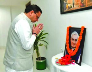 देहरादून। आज पूर्व प्रधानमंत्री अटल बिहारी वाजपेयी की पुण्यतिथि है। उनकी पुण्यतिथि पर मुख्यमंत्री पुष्कर सिंह धामी ने पुष्पांजलि अर्पित कर उन्हें श्रद्धांजलि दी। साथ ही योगदान को याद किया। उधर, बीजेपी प्रदेश मुख्यालय में […]