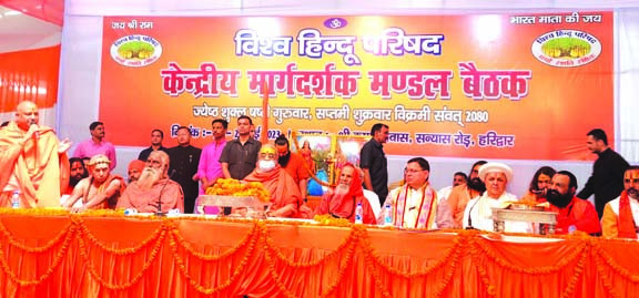 हरिद्वार। विश्व हिन्दू परिषद की यहां कनखल स्थित श्री कृष्ण निवास आश्रम में आयोजित दो दिवसीय केन्द्रीय मार्गदर्शक मंडल की अंतिम दिन की बैठक के प्रथम सत्र को मुख्यमंत्री पुष्कर सिंह धामी ने उद्घाटन किया।