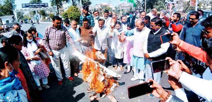 हरिद्वार। सोमवार को गैरसैंण में नंदप्रयाग-घाट सड़क के चैड़ीकरण की मांग कर रहे आंदोलनकारियों पर पुलिस द्वारा किया गये बर्बरता पूर्वक लाठीचार्ज पर हरिद्वार के कांग्रेसियों में उबाल आ गया। आंदोलनकारियों पर हुए लाठीचार्ज को लेकर आज महानगर कांग्रेस ने प्रदेश महासचिव संजय पालीवाल के नेतृत्व में लाठीचार्ज की कड़ी निंदा करते हुए भाजपा सरकार का पुतला फूंककर प्रदर्शन किया।