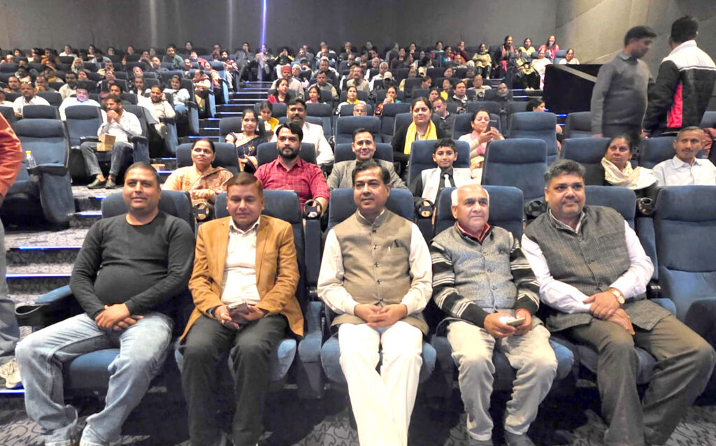 हरिद्वार। रानीपुर विधायक आदेश चौहान के नेतृत्व में रानीपुर विधानसभा के सैंकड़ांे कार्यकर्ताओं ने सिडकुल स्थित सिनेमाघर में फिल्म गोदान देखी। यह फिल्म भारतीय संस्कृति, ग्रामीण परिवेश और किसान जीवन के संवेदनशील झलक प्रस्तुत करते हुए समाज को अपनी परंपराओं और मूल्यों से जोड़ने का सशक्त संदेश देती है। रानीपुर विधायक आदेश चौहान ने कहा की गाय केवल धर्म और आस्था का विषय नहीं है बल्कि भारतीय संस्कृति, समाज और ग्रामीण अर्थव्यवस्था का अभिन्न अंग है। इस तरह के फिल्मों के माध्यम से समाज में सकरात्मक सोच, संवेदनशीलता और सांस्कृतिक चेतना विकसित होती है, इसलिए ऐसी फिल्मों को प्रोत्साहन दिया जाना आवश्यक है।