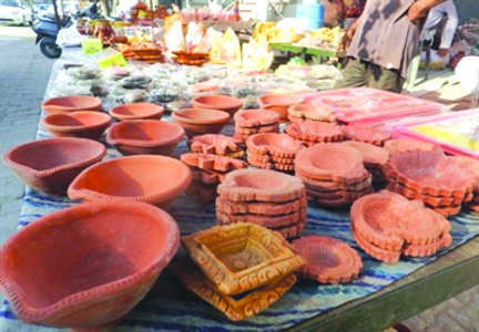 हरिद्वार। दीपों के पर्व दीपावली में अब चंद ही रोज शेष हैं। दीपावली की रौनक बाजारों मंें दिखने लगी है। बाजार ग्राहकों के लिए सज गए हैं। ऐसे में बाजारों में खरीदारों की भीड़ भी उमड़ने लगी है। चारों ओर बाजारों में रौनक ही रौनक दिखाई दे रही है। अब लोग दीपावली त्योहार को रंगीन करने के लिए चाइनीज उत्पाद छोड़ पारंपरिक मिट्टी के बने सजावटी सामान की ओर आकर्षित हो रहे हैं। मेड इन इंडिया के चलते अब लोगों की घरेलु उत्पादों में रूचि बढ़ रही है। जिस कारण से सजावट का सामान बनाने वाले भी खुश नजर आ रहे हैं। मेक इन इंण्डिया का सबसे अधिक असर कुंभकारों पर पड़ता दिखाई दे रहा है। जिसके चलते लोग अब मिट्टी का सामान व दिए में रूचि दिखा रहे हैं।