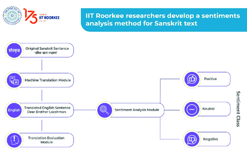 हरिद्वार। भारतीय प्रौद्योगिकी संस्थान रुड़की के शोधकर्ताओं ने संस्कृत टेक्स्ट के भाव विश्लेषण की एक कारगर विधि विकसित की है। हालांकि संस्कृत दुनिया की सबसे प्राचीन भाषाओं में एक है, लेकिन इसमें अब तक मशीनी अनुवाद और भाव विश्लेषण जैसे सहज भाषा प्रसंस्करण की खास कोशिश नहीं की गई है। ऐसे में आईआईटी रुड़की की तकनीक से 87.50 प्रतिशत सटीक मशीनी अनुवाद और 92.83 प्रतिशत सटीक भाव वर्गीकरण कर लेना बड़ी उपलब्धि है। इसके बावजूद कि संस्कृत दुनिया की सबसे प्राचीन भाषाओं में एक है। प्रचूर मात्रा में लेबल डेटा नहीं मिलने की वजह से मशीनी अनुवाद और भाव विश्लेषण जैसे सहज भाषा प्रसंस्करण कार्य बहुत कम हुआ है।