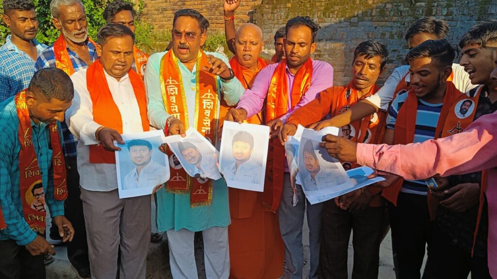 शिवसेना की जय घोष के साथ उदय निधि मुरदाबाद के नारे लगाए देवेंद्र प्रजापति ने कहा कि जिसके डीएनए में फर्क होता है वही ऐसी सोच रख बयान बाजी कर सकता है। प्रजापति ने चेतावनी देते हुए कहा कि उदय निधि अपने इस बयान पर सनातन धर्म के समूह से माफी मांगे अन्यथा शिवसेना इस तरीके की गतिविधियां बर्दाश्त नहीं करेगी।