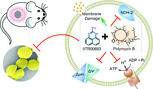 त्वचा को संक्रमित करने वाले रोगजनकों के बीच एंटीबायोटिक प्रतिरोध का उदय सार्वजनिक स्वास्थ्य के लिए एक तत्काल खतरा बन गया है और इसने नए उपचारों की खोज को बढ़ावा दिया है। वर्तमान में उपयोग की जाने वाली एंटीबायोटिक दवाओं की शक्ति को बढ़ाना दवा प्रतिरोधी रोगजनकों के कारण होने वाले संक्रमण के उपचार के लिए एक विकल्प है। आईआईटीआर 00693 दो मल्टीड्रग-प्रतिरोधी त्वचा-संक्रमित रोगजनकों, स्टैफिलोकोकस ऑरियस और स्यूडोमोनास एरुगिनोसा के खिलाफ पॉलीमीक्सिन की गतिविधि को प्रबल करता है, जो घातक सुपरबग्स के खिलाफ चल रही लड़ाई में महत्वपूर्ण है। इस कॉम्बिनेशन में एक्शन का एक नया डुअल मोड है जो बैक्टीरिया की कोशिकाओं को डी-एनर्जाइज करता है और उनकी झिल्ली को मिटा देता है। संयोजन प्रतिरोध विकास के लिए बहुत कम प्रवृत्ति दिखाता है, जो आज बाजार में कई एंटीबायोटिक दवाओं के साथ एक प्रमुख चिंता का विषय है।