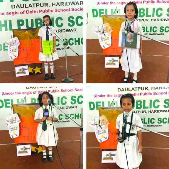 हरिद्वार। डीपीएस दौलतपुर में मंगलवार को शो एन्ड टेल गतिविधि के अंतर्गत कक्षा एक के बच्चों ने तकनीक आधारित विभिन्न वस्तुओं को मॉडल के जरिये प्रदर्शित कर उनके बारे में विस्तार से बताया। कक्षा संयोजिका सौभाग्या ने बताया कि बच्चों ने मोबाइल फोन, रिमोट, टीवी, लैपटॉप, इलेक्ट्रॉनिक घड़ी आदि सामानों को मॉडलों के जरिये प्रस्तुत कर उनके बारे में बताया।