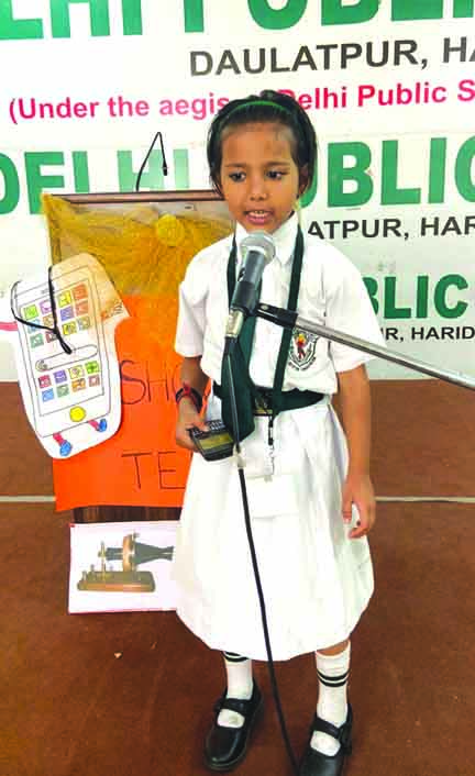 हरिद्वार। डीपीएस दौलतपुर में मंगलवार को शो एन्ड टेल गतिविधि के अंतर्गत कक्षा एक के बच्चों ने तकनीक आधारित विभिन्न वस्तुओं को मॉडल के जरिये प्रदर्शित कर उनके बारे में विस्तार से बताया। कक्षा संयोजिका सौभाग्या ने बताया कि बच्चों ने मोबाइल फोन, रिमोट, टीवी, लैपटॉप, इलेक्ट्रॉनिक घड़ी आदि सामानों को मॉडलों के जरिये प्रस्तुत कर उनके बारे में बताया।
