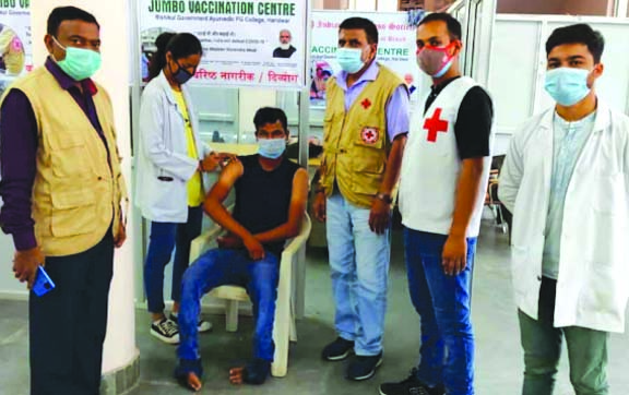 हरिद्वार। ऋषिकुल राजकीय आयुर्वेद महाविद्यालय में जम्बो कोविड-19 वैक्सीन के सेन्टर्स पर सभी आयु वर्ग के लाभार्थियों को वैक्सीन की प्रथम एवं द्वितीय डोज युद्धस्तर पर लगाई जा रही है, जिसमें रोजाना लगभग 1000 से उपर लाभार्थी वैक्सीन की डोज लगवाकर लाभ उठा रहे हैं। कोविड-19 वैक्सीन सेन्टर्स पर इण्डियन रेडक्रास के सचिव डा. नरेश चौधरी के नेतृत्व में रेडक्रास स्वयंसेवक बढ-चढकर सहयोग कर रहे हैं। वैंक्सीन संेन्टर्स पर स्वास्थय विभाग से अपर मुख्य चिकित्साधिकारी डा. एचडी शाक्य ने भ्रमण कर वैैक्सीनेशन सेन्टर्स पर व्यवस्थाओं के लिये रेडक्रास सचिव डा. नरेश चौधरी एवं सहयोग कर रहे रेडक्रास स्वयं सेवकों की सराहना की। ऋषिकुल वैैक्सीन सेन्टर्स पर सभी लाभार्थियों को कोविड-19 गाईड लाईन पालन के लिये प्रेेरित करने के उपरान्त ही वैक्सीन लगवाकर उनको जनसमाज को जागरूक करने के लिये भी संकल्प दिलाया जाता है। जिसके लिये भी डा. नरेश चौधरी की पहल की विशेष सराहना जनमानस में हो रही है। वैक्सीनेशन सेन्टर्स पर सदभावना दिवस के उपलक्क्ष में डा. नरेश चौधरी ने सभी लाभार्थियों एवं वैक्सीनेशन सेन्टर्स पर कार्य कर रहे रेडक्रास स्वयं सेवकों को सदभावना दिवस की प्रतिज्ञा‘ कराई कि, हम सब जाति, सम्प्रदाय, क्षेत्र, धर्म अथवा भाषा का भेदभाव किये बिना सभी भारतवासियों की भावनात्मक एकता और सदभावना के लिये कार्य करेंगें। साथ-साथ हम सब हिंसा का सहारा लिये बिना सभी प्रकार के मतभेद बातचीत और संवैधनिक माध्यमों से सुलझाएगें। वैक्सीन टीम में विकास देशवाल, डा. उर्मिला पाण्डेय, डा. तनवी गौसाई, पूनम, राहुल पाण्डेय, मनीष रावत, अनिल सिंह नेगी, डा. गणेश, डा. प्रशान्त, डा. राहुल कोहली, आदि ने सक्रिय सहभागिता की।