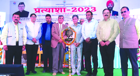 हरिद्वार। ऋषिकुल राजकीय आयुर्वेद महाविद्यालय में उत्तराखण्ड आयुर्वेद विश्वविद्यालय एवं हेमवती नन्दन बहुगुणा चिकित्सा विश्वविद्यालय के संयुक्त तत्वाधान में 03 दिवसीय अन्तर्राष्ट्रय सेमिनार प्रत्याशा -2023 का उत्तराखण्ड आयुर्वेद विश्वविद्यालय के कुलपति प्रो. (डा.) सुनील कुमार जोशी एवं हेमवती नन्दन बहुगुणा चिकित्सा विश्वविद्यालय के कुलपति प्रो. (डा.) हेमचन्द्र पाण्डेय ने संयुक्त रूप से दीप प्रज्जवलित कर शुभारम्भ किया तथा सेमिनार के सोविनियर का विमोचन भी किया गया।
