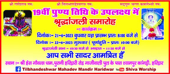 हरिद्वार। श्री हंस गौवत्स धाम श्यामपुर कांगड़ी में हंस दास महाराज की 19वीं पुण तिथि गुरुवार को श्रद्धापूर्वक मनायी जाएगी। पुण्य तिथि कार्यक्रम का शुभारम्भ आज यज्ञ के साथ हुआ।