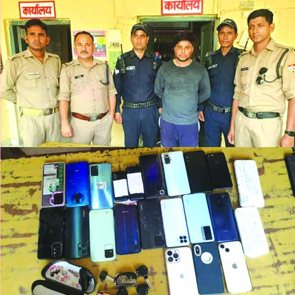 कब्जे से चोरी के 22 मोबाइल, 06 स्कूटी की चाबियां व 16 सिम कार्ड बरामद