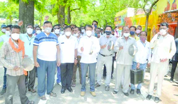 थाली बजाकर नगर निगम कर्मचारी संयुक्त मोर्चा ने किया प्रदर्शन