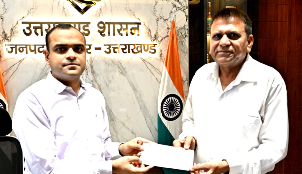 हरिद्वार। इंडियन रेडक्रॉस उत्तराखण्ड के चेयरमैन एवं ऋषिकुल राजकीय आयुर्वेद महाविद्यालय के प्रोफेसर (डॉ.) नरेश चौधरी को उनके साहसिक और मानवीय कार्य के लिए जिलाधिकारी हरिद्वार मयूर दीक्षित ने आज पांच हजार रुपये का चेक प्रदान कर सम्मानित किया।