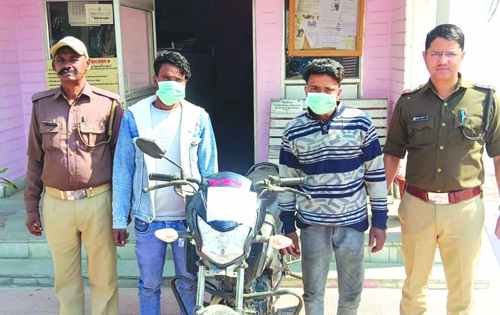 चोरों की तलाश में जुटी पुलिस ने चैकिंग के दौरान एबीबी चौक सिडकुल के पास से दो संदिग्धों को गिरफ्तार कर चोरी की बाइक बरामद की। पूछताछ में आरोपितों ने अपने नाम पते विकास व पुष्पेंद्र उर्फ सोनू उम्र 21 वर्ष निवासीगण ग्राम मुजफ्फरपुर नन्हेडा थाना नहटौर जिला बिजनौर उत्तर प्रदेश हाल निवासी आबिद का मकान तिरुपति कॉलोनी सलेमपुर थाना रानीपुर जनपद हरिद्वार बताए।