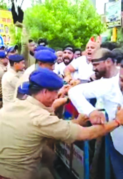 हरिद्वार। मुख्यमंत्री पुष्कर सिंह धामी सरकार के 4 साल पूरा होने पर विकास संकल्प पर्व में शामिल होने के लिए आज हरिद्वार पहुंचे। इस दौरान कांग्रेसियों ने काली पट्टी बांधकर मुख्यमंत्री का विरोध किया। विरोध कर रहे कांग्रेसियों को पुलिस में हिरासत में ले लिया।