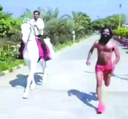 मंगलवार को अपने पतंजलि उत्पादों के ब्रांड एंबेसडर बाबा रामदेव ने घोड़े की रफ्तार से भी तेज हवा से बातें की। पतंजलि योगपीठ परिसर में बाबा ऐसे दौड़े की उन्होंने घोड़े को भी पछाड़ दिया। बताते हैं कि बाबा अपने उत्पाद हॉर्स पावर के लिए यह वीडियो बनाया। बाबा का यह वीडियो चर्चा को विषय बना हुआ है।