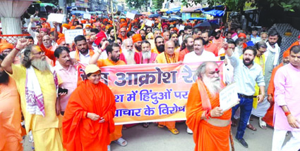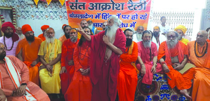 हरिद्वार। बंगलादेश मंे हिन्दुआंे पर हो रहे अत्याचार के विरोध मे संत समाज के नेतृत्व में संत आक्रोश रैली निकाली गई। रैली उछाली आश्रम से हरकी पैडी तक निकाली गयी। संत समाज ने यूएनओ से हिन्दुओ का अलग देश बनाया जाने व तत्काल हिन्दुआंे पर अत्याचार बंद कराए जाने की मांग की।