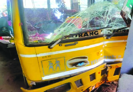 सोमवार की सुबह बच्चों को स्कूल छोड़ने जा रही एक बसका टायर फटने से वह अनियंत्रित होकर हादसे का शिकार हो गई। इस हादसे में बच्चों और कर्मचारियों को हल्की चोटें आई हैं। हालांकि गनीमत रही कि कोई बड़ा हादसा नहीं हुआ।