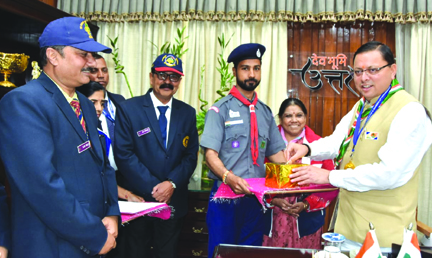 मुख्यमंत्री पुष्कर सिंह धामी से सोमवार को मुख्यमंत्री कैम्प कार्यालय में भारत स्काउट एवं गाइड की स्थापना दिवस के अवसर पर भारत स्काउट एवं गाइड के प्रतिनिधि दल ने भेंट की।