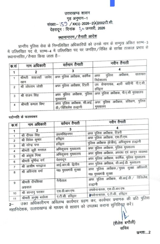 पुलिस विभाग में 15 एएसपी व 7 डीएसपी के तबादले, देखें लिस्ट