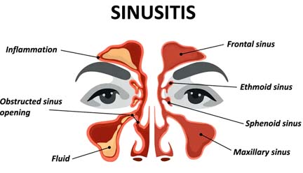 वास्तव में साइनस के संक्रमण होने पर साइनस की झिल्ली में सूजन आ जाती है। सूजन के कारण हवा की जगह साइनस में मवाद या बलगम आदि भर जाता है, जिससे साइनस बंद हो जाते हैं। इस वजह से माथे पर, गालों व ऊपर के जबाड़े में दर्द होने लगता है।