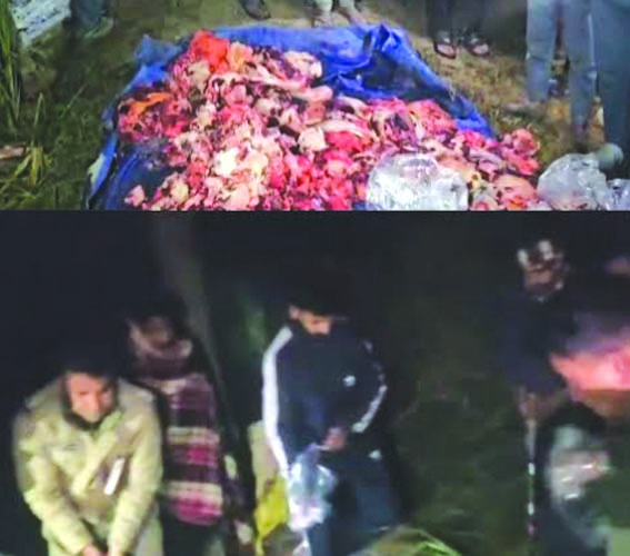 मौके से 150 किलो गांेमांस बरामद, एक गोवंश को बचाया