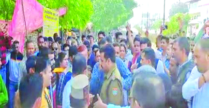 रविवार की सुबह हरिद्वार रोड स्थित नीम करोली मंदिर के पास पिछले तीन दिनों से धरना दे रहे जनप्रतिनिधियों को समर्थन देने के लिए सैकड़ों लोग पहुंच गए। यह जानकारी मिलते ही कोतवाल रवि सैनी और एसएसआई दर्शन सिंह काला मौके पर स्थिति को देखने के लिए पहुंचे। पुलिस को देखते ही जनप्रतिनिधियों ने विरोध प्रदर्शन तेज कर दिया। पुलिस के खिलाफ भी जमकर नारेबाजी की।