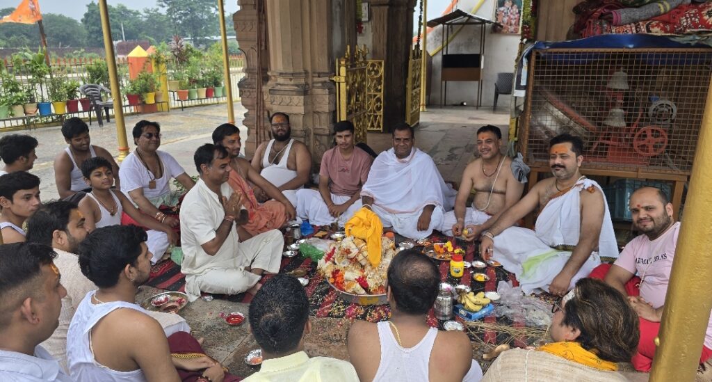 गंगा जी की मृतिका , भस्म , गांय के गोबर से स्नान किया पंचगव्य प्राशन किया ऋषि तर्पण आदि किया तत्पश्चात गणपति नवग्रह कलश इत्यादि की पूजा कर कर सप्त ऋषियों की स्थापना की सप्तर्षियों की स्थापना के पश्चात यज्ञोपवीत में सभी देवी देवताओं का आवाहन प्राण प्रतिष्ठा पूजन आदि किया तथा ऋषियों की प्राण प्रतिष्ठा एवं कृपा प्राप्त करने के लिए वेद पाठ आदि किया गया जिसमें सभी ब्राह्मणों ने भाग लिया। श्रावणी उपक्रम में भाग लेने में आचार्य नितिन शुक्ला, डॉक्टर प्रतीक मिश्रापुरी, दीप रतन शर्मा नीरज शुक्ला विनीत पाराशर अभिनव शुक्ला, यज्ञ चक्रपाणि, मनोज शर्मा आदित्य शर्मा अंकित शर्मा, रचित शर्मा , नीतीश सिखोला,अमित मिश्रा, मनोज शर्मा, प्रहलाद चौबे, योगेश शर्मा, दीपांशु कौशिक, अनमोल वशिष्ठ, अक्षत वशिष्ठ, नितिन झा, शिवम गौतम, मानविक गौतम,आदि ब्राह्मणों ने श्रावणी उपक्रम विधि विधान से किया।