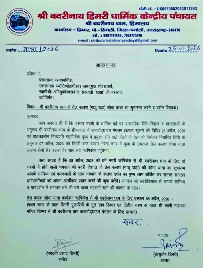 धार्मिक जानकारों के मुताबिक, गाडू घड़ा यात्रा बदरीनाथ धाम की सबसे महत्वपूर्ण परंपराओं में से एक है। ऐसे में शंकराचार्य के रूप में न्योता दिया जाना, उनके पद को लेकर चल रहे विवादों के बीच एक बड़ा संदेश माना जा रहा है। गौरतलब है कि आदि जगद्गुरु शंकराचार्य भगवान ने देश की चार दिशाओं में चार पीठों की स्थापना की थी। उत्तर दिशा की पीठ ज्योतिषपीठ, श्री बदरीनाथ धाम है। यहां स्वामी अविमुक्तेश्वरानंद सरस्वती महाराज शंकराचार्य के रूप में विराजमान हैं। अब देखना होगा कि योगी सरकार 40 दिन के अल्टीमेटम पर क्या रुख अपनाती है और उत्तराखंड से मिले इस धार्मिक संकेत का राजनीतिक और सामाजिक असर किस दिशा में जाता है। गौरतलब है कि इस साल बदरीनाथ धाम के कपाट 23 अप्रैल को खुलने जा रहे है।