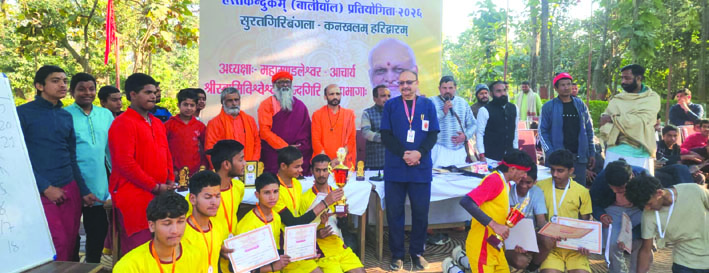 हरिद्वार। श्री महेश्वरानंद सांग्वेद सस्कृत महाविद्यालय सूरतगिरि बंगला गिरिशानंदाश्रम में आयोजित तीन दिवसीय बॉलीवॉल प्रतियोगिता का आज पुरस्कार वितरण के साथ समापन हो गया। प्रतियोगिता में श्री महेश्वरानंद सांग्वेद सस्कृत महाविद्यालय की टीम विजेता व भगवत धाम विद्यालय की टीम उपविजेता रही।