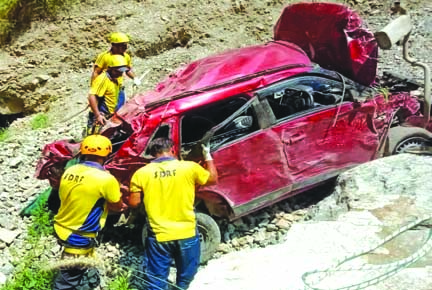जानकारी के मुताबिक, घटनास्थल पर पहुंचकर रोप के माध्यम से एसडीआरएफ की टीम वाहन तक पहुंची और तीन शवों को वाहन से बाहर निकालकर खाई से बाहर निकाला।