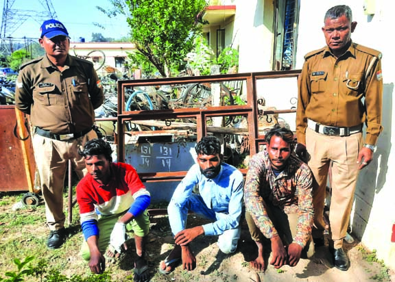 जानकारी के मुताबिक कोतवाली रानीपुर क्षेत्र के सलेमपुर में स्क्रैप गोदाम स्थित ईरा स्कूल सुमन नगर के पास गोदाम की दीवार से खिडकी उखाडकर बीते रोज चोरी कर ली गई थी। जिसके संबंध में गोदाम स्वामी शहीद हुसैन पुत्र अब्दूल मजीद निवासी सलेमपुर रानीपुर हरिद्वार ने पुलिस को चोरी के संबंध में तहरीर देकर मुकद्मा दर्ज कराया। आज गोदाम से चोरी कर खिड़कियों को झाडियों मे छुपातें पुलिस ने तीनों चोरों को रंगेहाथों घटना में प्रयुक्त दो बाइकों के साथ गिरफ्तार कर लिया।