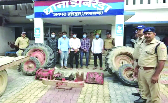 झबरेड़ा थानाध्यक्ष संजीव थपलियाल ने बताया कि भगतोवाली गांव निवासी किसान रमजानी ने पांच अक्टूबर को थाने में तहरीर दी थी, जिसमें उन्होंने कहा था कि उसकी ट्रैक्टर ट्रॉली घर में खड़ी थी, रात को किसी समय चोरों ने उसे चोरी कर लिया। तहरीर के आधार पर पुलिस ने अज्ञात के मुकदमा दर्ज किया और मामले की जांच शुरू की। पुलिस ने बताया कि टीम ने इलाके में लगे सीसीटीवी कैमरों की फुटेज खंगाली। साथ ही अन्य जानकारी भी जुटाई गई। जिसके बाद पुलिस कुछ सुराग हाथ लगे, जिन पर पड़ताल शुरू की गई। 11 अक्टूबर रात को पुलिस टीम ने जावेद, सलमान, सरफराज, आसिफ और नईम को गिरफ्तार किया। आरोपियों से जब सख्ती से पूछताछ की गई तो भगतोवाली गांव निवासी चारों आरोपियों ने बताया कि उन्होंने ही पांच अक्टूबर को ट्रैक्टर ट्रॉली चोरी की थी, जिसे उन्होंने पुरकाजी निवासी जावेद को बेच दिया था।