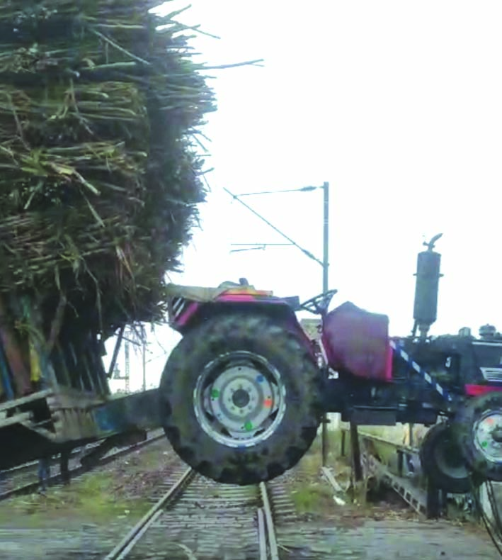 दरअसल ट्रैक्टर ट्रॉली गन्ने से लदी हुई थी। ओवरलोड होने के कारण ट्रॉली बैंलेस खो बैठी और पीछे की ओर झुक गई। ट्रैक्टर ट्रॉली का आधा हिस्सा फाटक के इस पार और आधा उस पार फंस गया। जिस कारण ट्रेन के मार्ग में बाधा उत्पन्न हो गई।