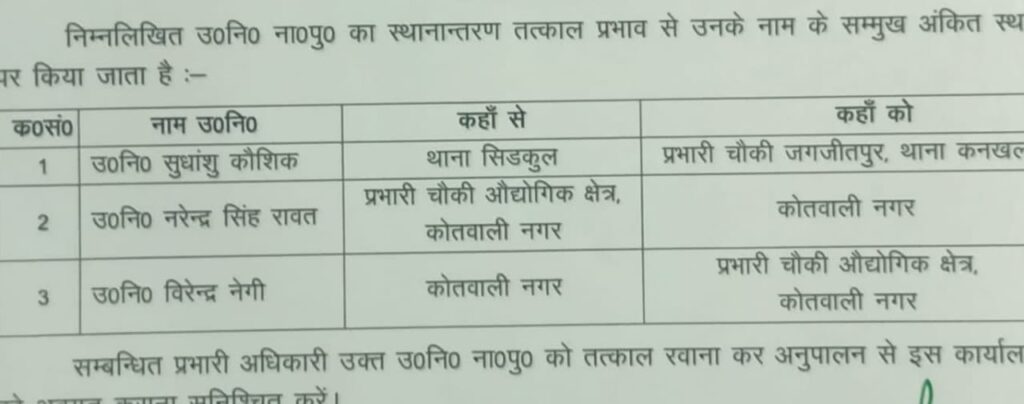 हरिद्वार: ssp ने फिर उप निरीक्षकों के तबादले किए