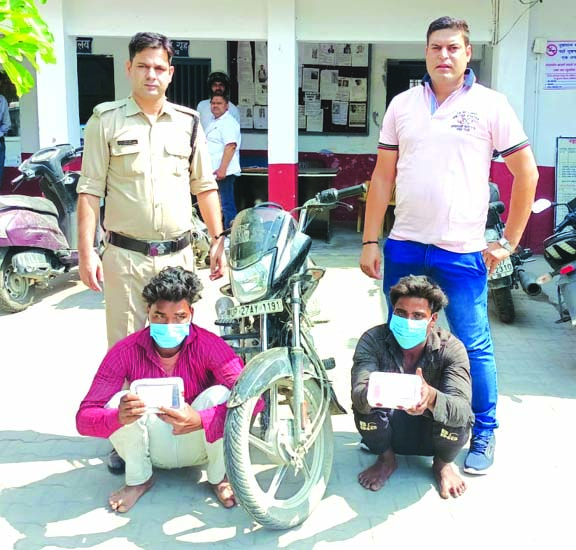 जानकारी के मुताबिक 18 अप्रैल को गोविन्दुपरी कालोनी ज्वालापुर निवासी एक युवती ने पुलिस को तहरीर देकर अज्ञात बाइक सवारों द्वारा मोबाइल लूट के संबंध में मुकद्मा दर्ज काराया था। पुलिस ने मुकद्मा दर्ज कर बदमाशों की तलाश के प्रयास शुरू कर दिए थे। आज पुलिस ने कार्यवाही करते हुए दो आरोपितों को गिरफ्तार किया है। पुलिस पूछताछ में पकड़े गए आरोपितों ने अपने नाम मोहित पुत्र हीरालाल निवासी ग्राम शिवगढ़ थाना पथरी जनपद हरिद्वार व सुमित कुमार पुत्र विजेंद्र कुमार निवासी दुर्गागढ़ थाना पथरी जनपद हरिद्वार बताए।