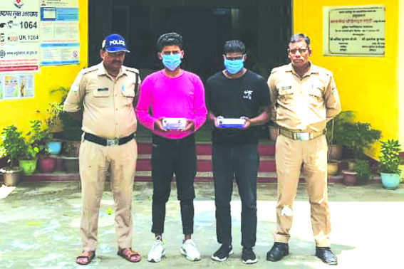 चोरांे की गिरफ्तारी के लिए पुलिस ने घटनास्थल के आसपास के सीसीटीवी कैमरे खंगाले। मुखबिर की सूचना पर पुलिस ने आज केंद्रीय विद्यालय से स्वर्ण जयंती चौराहे के समीप हनुमान मंदिर को जाने वाले रास्ते के पास आशीष उर्फ शिबू निवासी हाउस नंबर 352 गली नंबर 4 टिबडी थाना कोतवाली रानीपुर व संदीप मूल निवासी ग्राम तरछा जिला सारसा हाल पता रामेश्वर संजय नगर टिबडी थाना कोतवाली रानीपुर जनपद हरिद्वार को गिरफ्तार कर लिया।