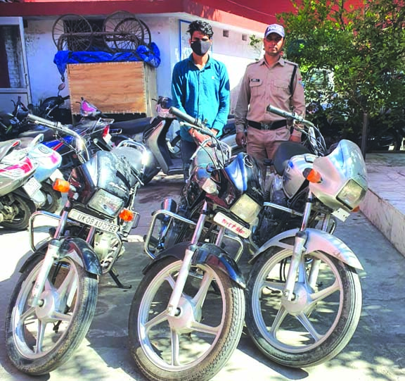 पकड़े गए आरोपित ने बरामद बाइक को कोतवाली नगर क्षेत्र से चोरी किया था। पुलिस ने आरोपित की निशानदेही पर चोरी की अन्य दो अन्य बाइक बरामद की गई। इन बाइकों को आरोपित ने कोतवाली रानीपुर, हरिद्वार व बिजनौर उत्तर प्रदेश से चोरी किया था। पुलिस पूछताछ में आरोपित ने अपना नाम विकास पुत्र विजय निवासी झबरपुर थाना पुरकाजी जिला मुजफ्फर नगर उत्तर प्रदेश बताया। एक अन्य विधी विवादित किशोर को भी पुलिस ने हिरासत में लिया है। पुलिस ने आरोपित के खिलाफ मुकद्मा दर्ज कर उसका चालान कर दिया है।
