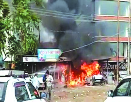 मिली जानकारी के अनुसार घटना रविवार सुबह को हुई। गनीमत रही कि कोई इस आग की चपेट में नहीं आया। बताया जा रहा है कि गाडि़यों के वर्कशॉप में सुबह अचानक आग लग गई थी। जिसके बाद पुलिस और अग्निशमन विभाग की दो गाडि़यों को बुलाया गया। पटेल नगर थाना क्षेत्र के हरिद्वार बाईपास स्थित निरंकारी भवन के पास शहजाद के वर्कशॉप की दुकान में आग लगी थी। बड़ी मुश्किल से आग पर काबू पाया, लेकिन तब तक एक कार पूरी जल चुकी थी। पटेलनगर थाना प्रभारी निरीक्षक सूर्य भूषण नेगी ने बताया कि घटना से होने वाले नुकसान का पता लगाने के साथ ही घटना के कारणों की भी जांच की जा रही है।