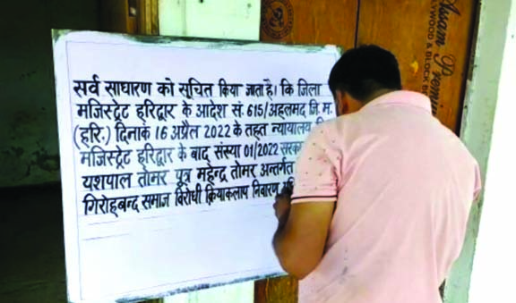 हरिद्वार में गैंगस्टर Yashpal tomer की सम्पत्ति की कुर्क